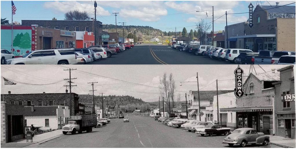 View of Broadway Avenue looking north. The color photo on top was taken in 2019, and the black and white snapshot on the bottom dates to 1959. Courtesy of Ryan Bartholomew.